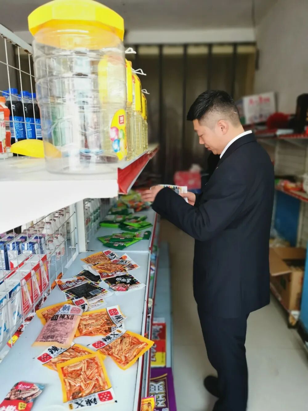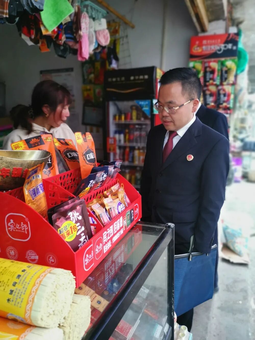 检察干警对商户售卖食品进行抽查