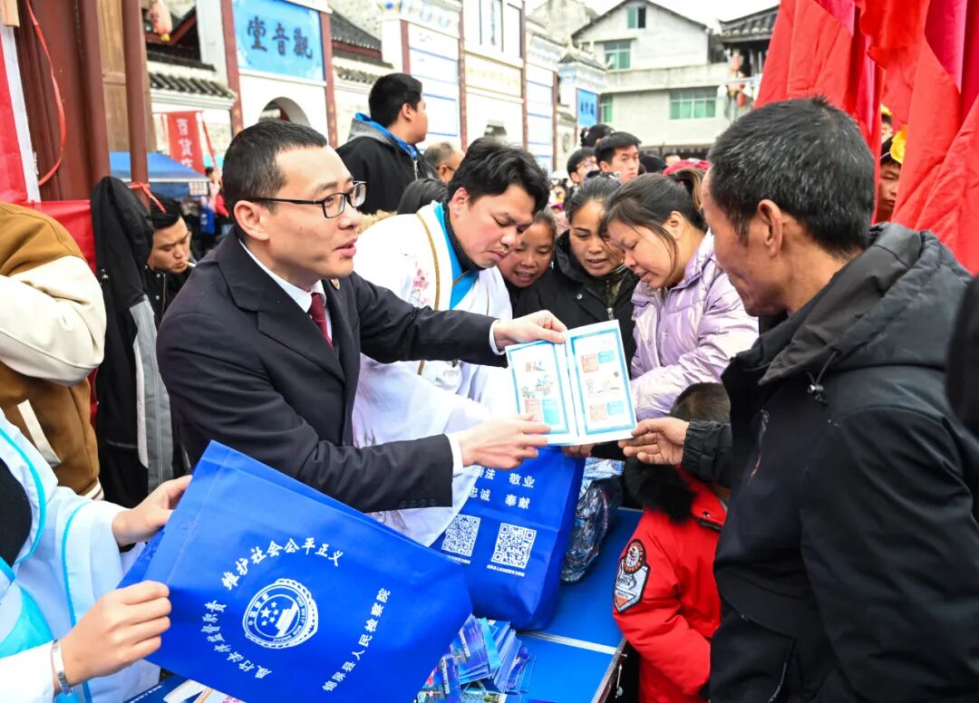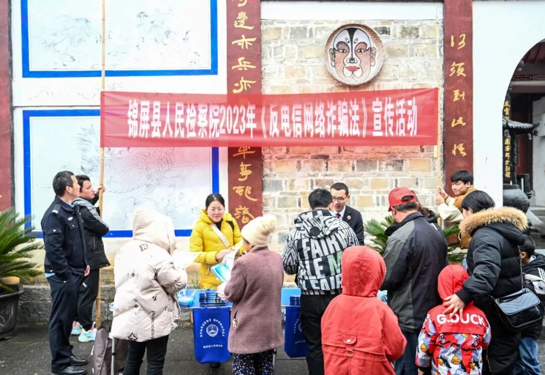 2月5日(农历元宵节),锦屏检察也到古城“打卡过节”。利用隆里人民过元宵节的契机开展了《中华人民共和国反电信网络诈骗法》宣传活动。检察干警主动融合当地文化特色,身着汉服和检察制服两种服装进行,对比明显,引人注目,吸引大批游客和群众的围观,检察干警乘势发放宣传资料、宣传相关反诈知识,给现场群众送上一份份“节日礼包”。干警利用“帮助信息网络犯罪活动罪”等真实案例引导群众树立守法、防诈、反诈的意识。活动最后,检察机关温馨叮嘱和指导现场群众下载“国家反诈中心”APP。