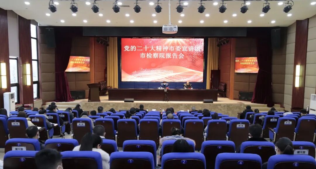 市检察院党组副书记、常务副检察长、机关党委书记杨胜鸿在主持报告会时要求,全体检察人员要全面准确学习领会党的二十大精神,做到原原本本学、深入思考学、系统全面学、结合实际学、与时俱进学,深刻领悟新思想、新论断、新部署、新要求,结合检察工作实际,贯彻落实好《中共中央关于加强新时代检察机关法律监督工作的意见》和省委《实施意见》,切实将学习成果转化为坚定理想信念、强化理论武装、提高工作本领的强大动力,以高质量检察履职守护人民美好生活需要。