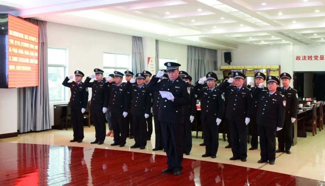“我是人民检察院司法警察,我宣誓:忠于中国共产党,忠于祖国,忠于人民,忠于宪法和法律;服从命令,听从指挥;严守纪律,保守秘密;秉公执法,清正廉洁;恪尽职守,不怕牺牲;全心全意为人民服务。我愿献身于崇高的检察事业,为实现自己的誓言而努力奋斗。”1月10日,在第三个“中国人民警察节”到来之际,贵州省六盘水市检察机关全体司法警察身着警服,警容严整,面向警旗进行了庄严宣誓。