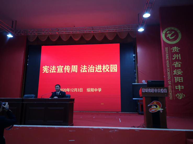 为迎接第七个国家宪法日的到来,弘扬宪法精神。近日,绥阳县人民检察院法治宣讲团深入学校开展法治进校园活动,为该县绥阳中学、绥阳县职业技术学校、城关中学、郑场中学共计1200余名师生开展法治讲座,讲座以《宪法》知识、《民法典》知识、青少年常见犯罪类型、校园反欺凌等为主题。宣讲人从法律精神、具体法律条文出发,结合日常工作中办理的未成年人犯罪、侵害未成年人犯罪案例,给学生们上了一场场生动活泼的法治课,本次宣传活动向学生发放了普法知识小手册,并在现场设立法律咨询台为同学们答疑解惑。