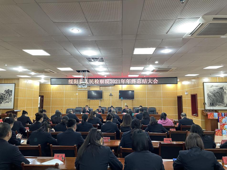 2021年1月28日,绥阳县人民检察院召开2021年度工作总结大会,回顾总结了2021年我院各项工作的成效经验,反思存在的不足短板,并对2022年工作作出安排部署。党组书记、检察长谢成筠作总结讲话,党组成员、副检察长黄波主持会议,全院干警参会。