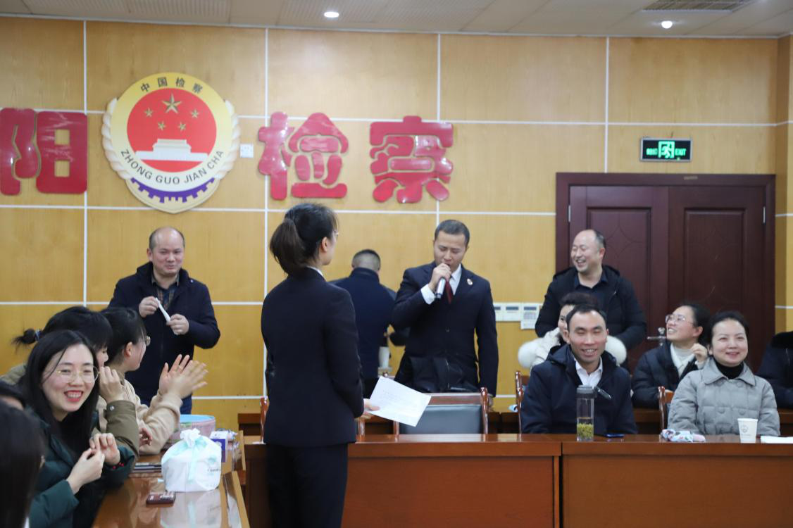 会后,我院还组织开展了“喜迎新春、凝心聚力、共谋发展”党建文化活动。党建文化活动节目丰富多彩,有融汇党史知识的抢答比赛、有展现检察工作苦与乐的文艺表演……节目精彩连连,现场气氛热烈欢快。