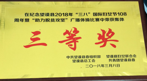 (图为获得广播体操比赛三等奖荣誉牌匾)
